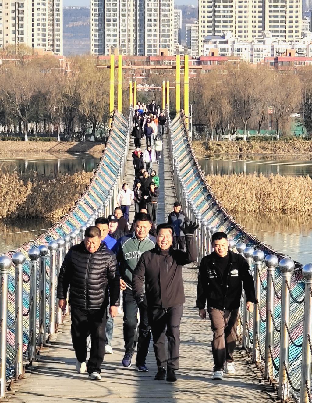 冬日里,雖寒風微凜,但抵擋不住職工們的熱情。隨著出發(fā)指令的響起,健步行活動正式拉開帷幕。職工們精神抖擻、步伐堅定,沿著既定路線有序前行。冬日暖陽映照碧波,渭水兩岸生機盎然。一路上,大家歡聲笑語,或三五結伴,相互鼓勵,暢談工作生活趣事;或獨步當先,挑戰(zhàn)自我。既有年輕職工沖鋒在前的活力,也有老員工堅持不懈的執(zhí)著,更有團隊間相互鼓勁的溫暖。歡聲笑語與矯健步伐交織,在近7公里的步行道上形成了一道亮麗的流動風景線,展現(xiàn)了公司員工不懼難不畏險、敢擔當善作為的精神風貌。